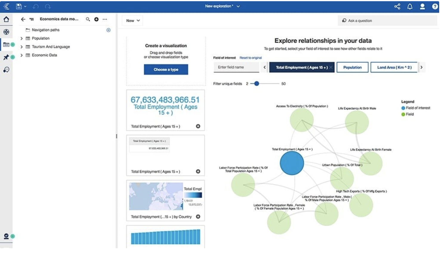 - Dashboard & Stories : IBM® Cognos® Analytics provides dashboards and stories to communicate your insights and analysis. You can assemble a view that contains visualizations such as a graph, chart, plot, table, map, or any other visual representation of data.