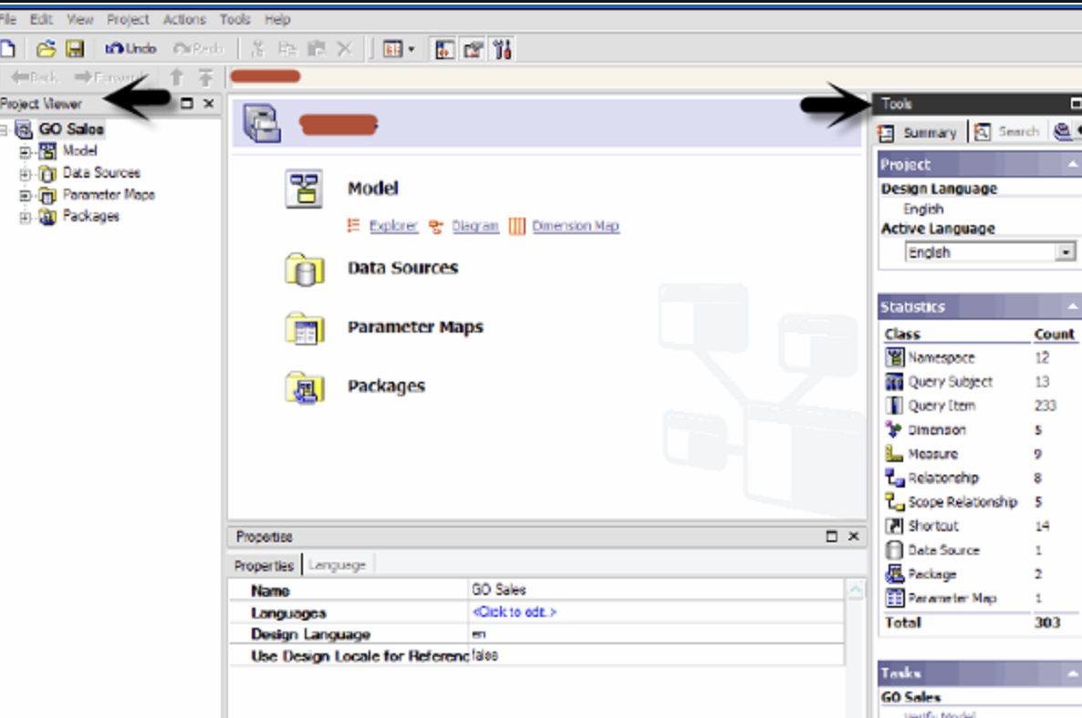 - Framework Manager : Dimensional Modeling tool to create reporting packages for consumption by reporting suites within Cognos. It is a window based tool and is considered most robust modeling tool to build a star schema or snowflake structure with compatability to most of the datasources offered by Industries.